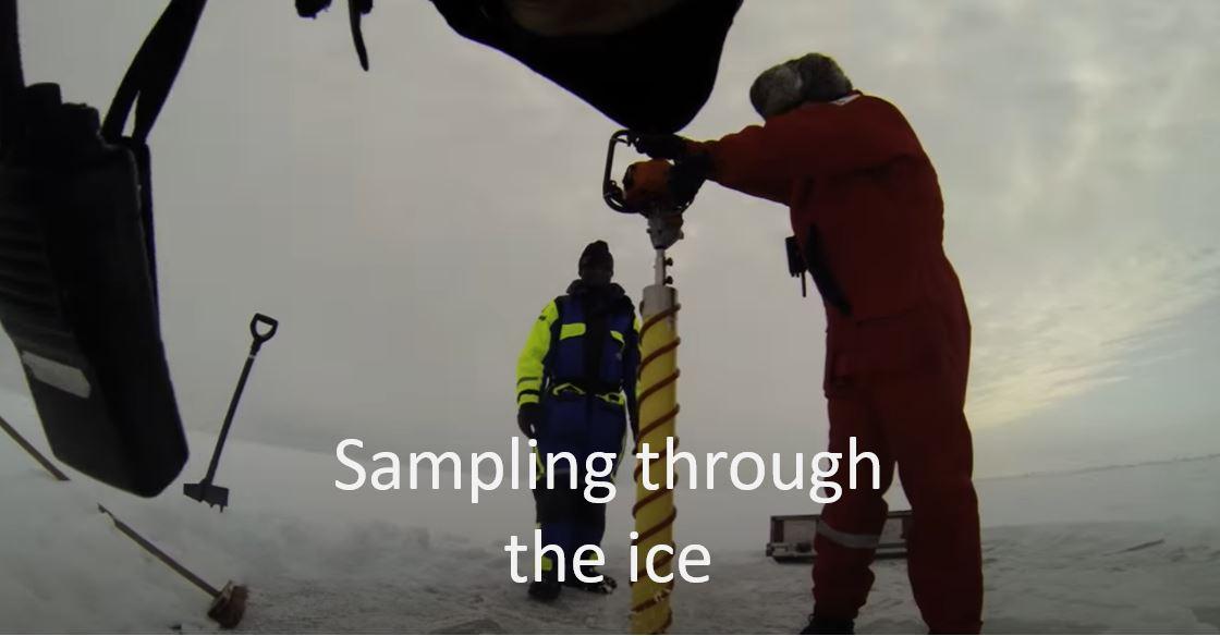 Sampling through the ice. Näytteenottoa jään päältä.